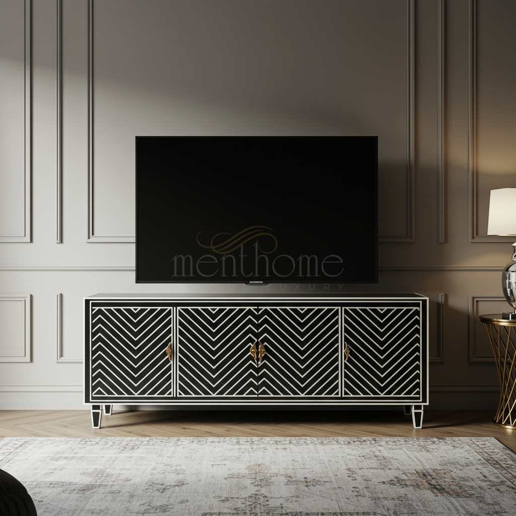 Inlay Chevron Pattern Luxury TV Cabinet | Luxury Handmade TV Cabinet