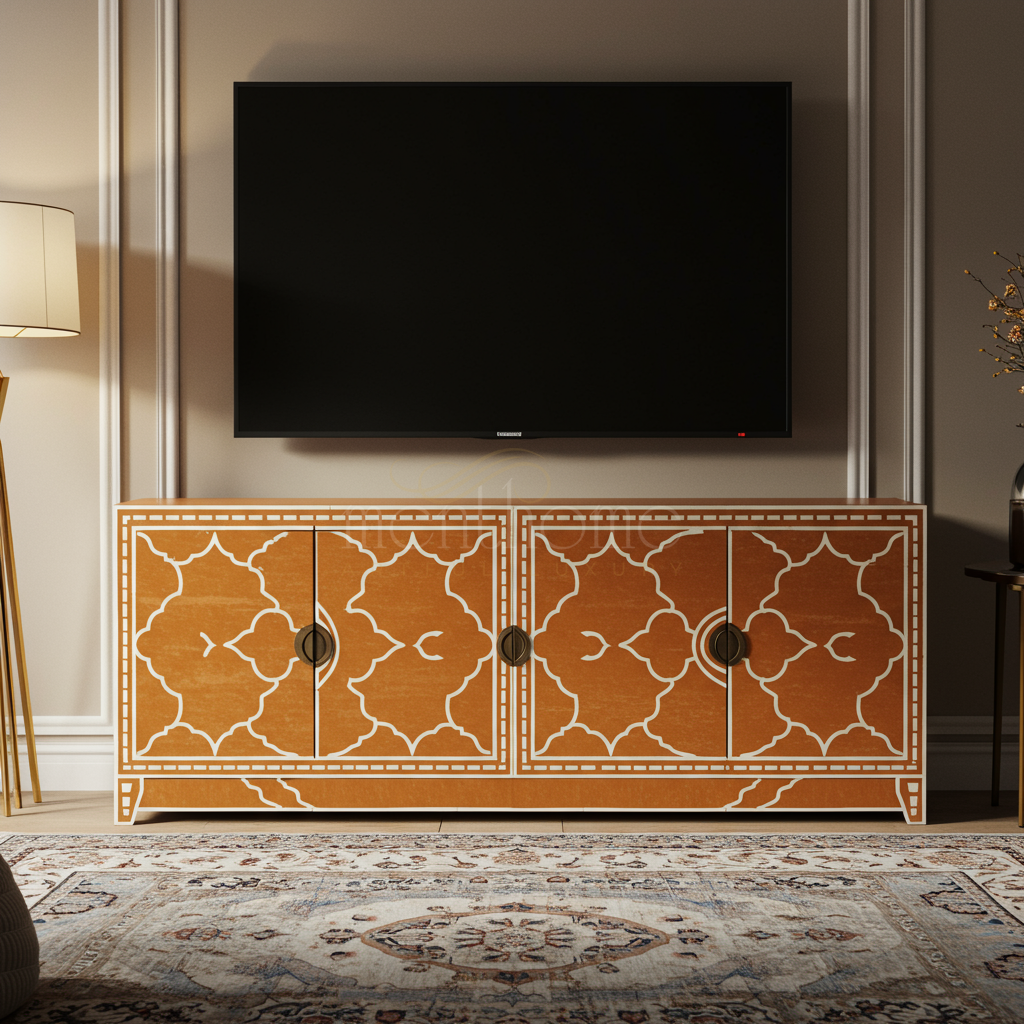 Inlay Patterned Luxury TV Cabinet | Luxury Handmade TV Cabinet