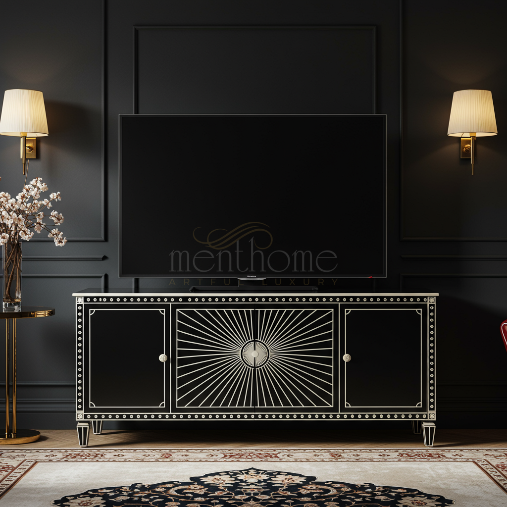Inlay Sunburst Black Luxury TV Cabinet | Luxury Handmade TV Cabinet