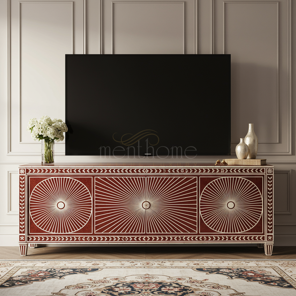 Inlay Sunburst Design TV Cabinet | Luxury Handmade TV Cabinet