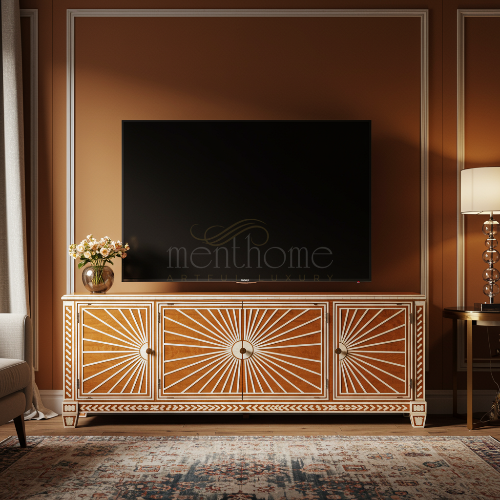 Inlay Sunburst Pattern Luxury TV Cabinet | Luxury Handmade TV Cabinet