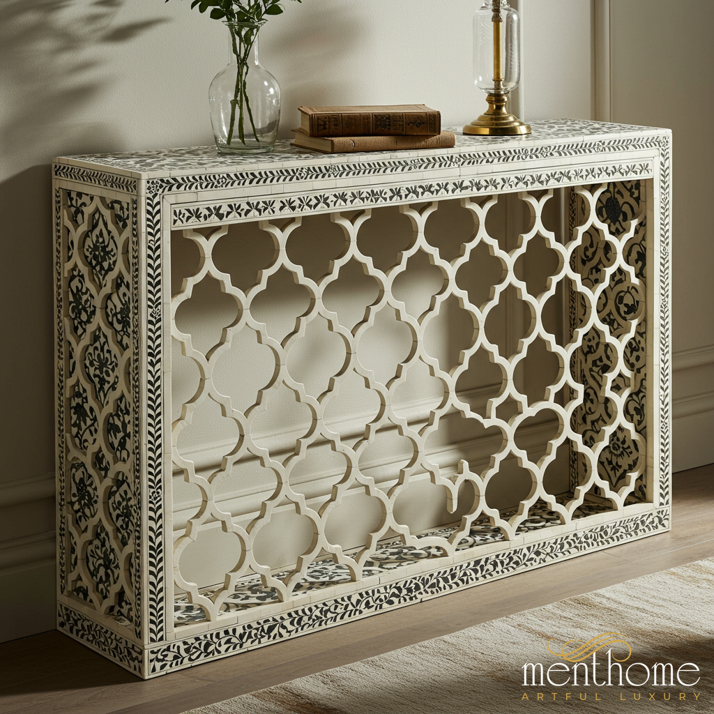 Intricate Bone Inlay Console Table | Luxury Handmade Console