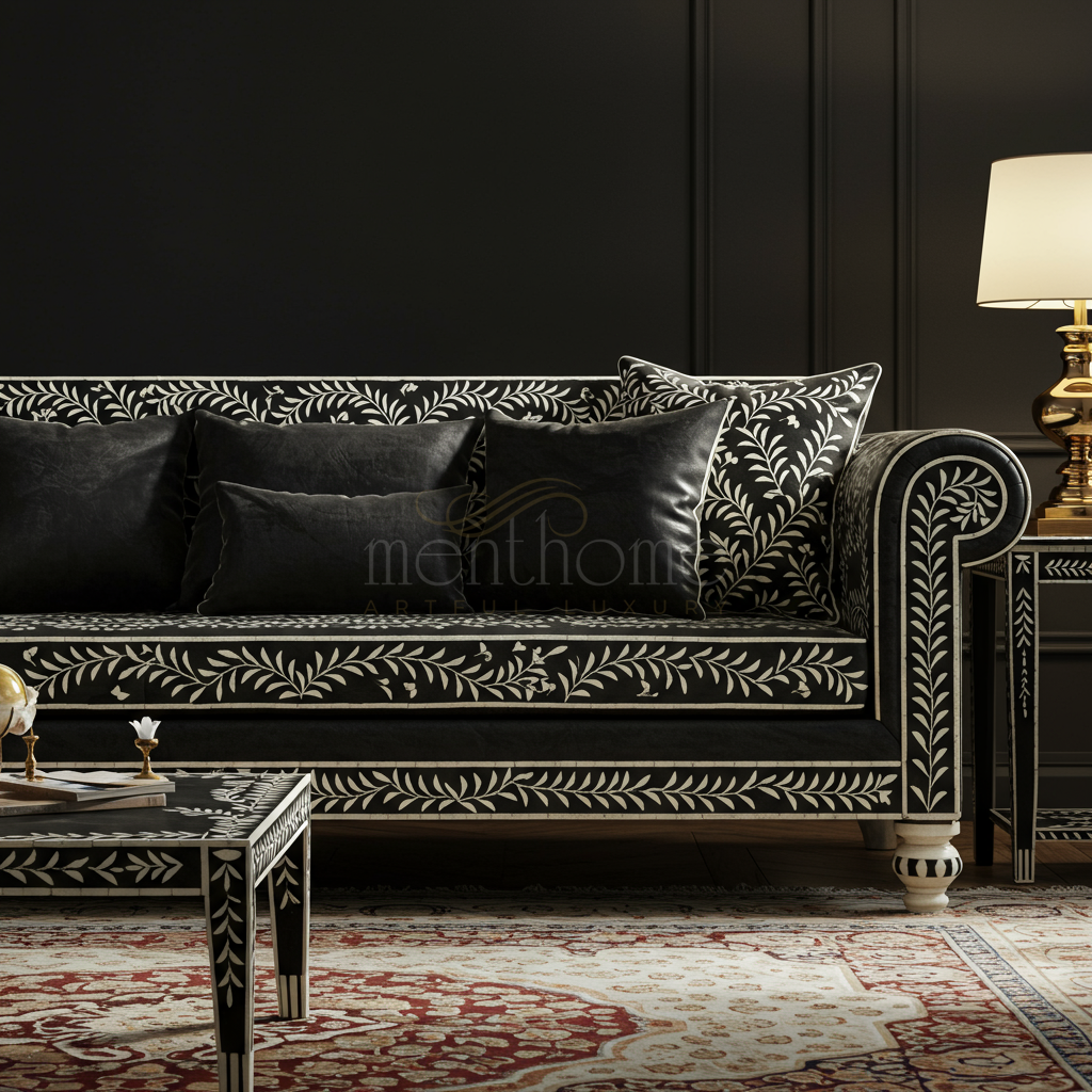 Luxury Black and White Floral Inlay Sofa | Luxury Handmade Sofa
