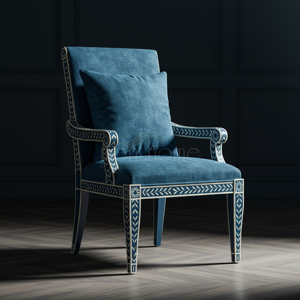 Luxury Blue Inlay Armchair | Luxury Handmade Chair
