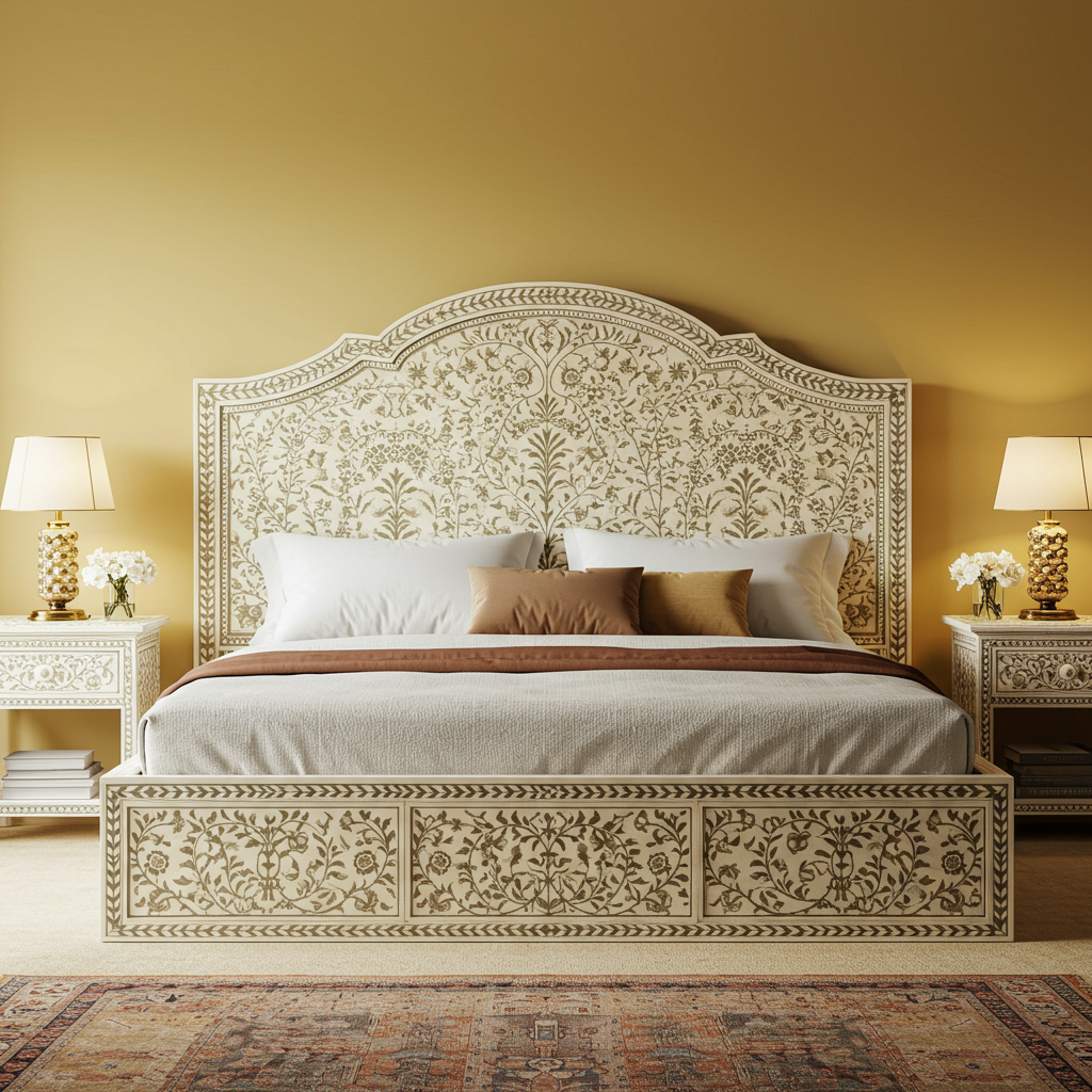 Luxury Hand-Carved Floral Pattern King Size Bed