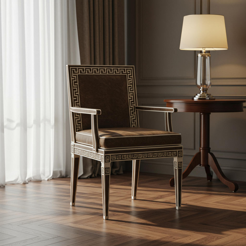 Luxury Inlay Armchair with Greek Key Detailing | Luxury Handmade Chair