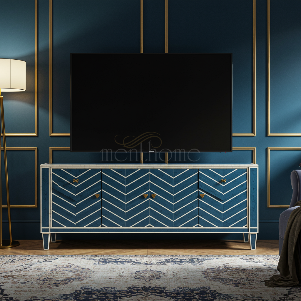 Luxury Inlay Blue Chevron TV Cabinet | Luxury Handmade TV Cabinet