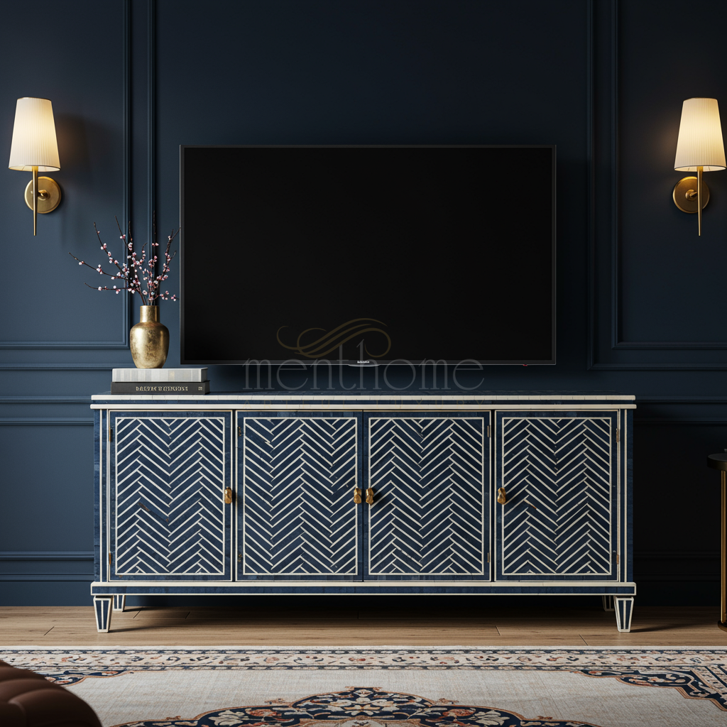 Luxury Inlay Blue Chevron TV Cabinet | Luxury Handmade TV Cabinet