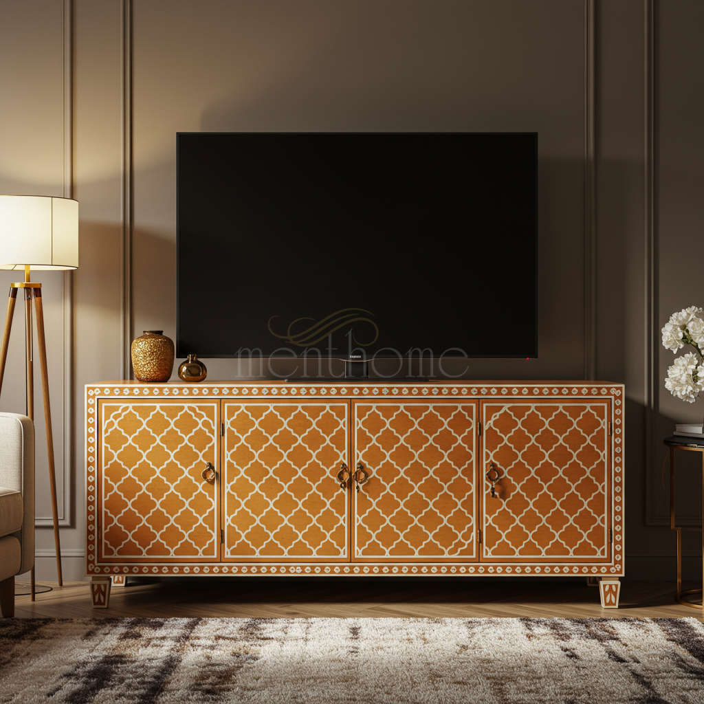 Luxury Inlay Patterned TV Cabinet | Luxury Handmade TV Cabinet