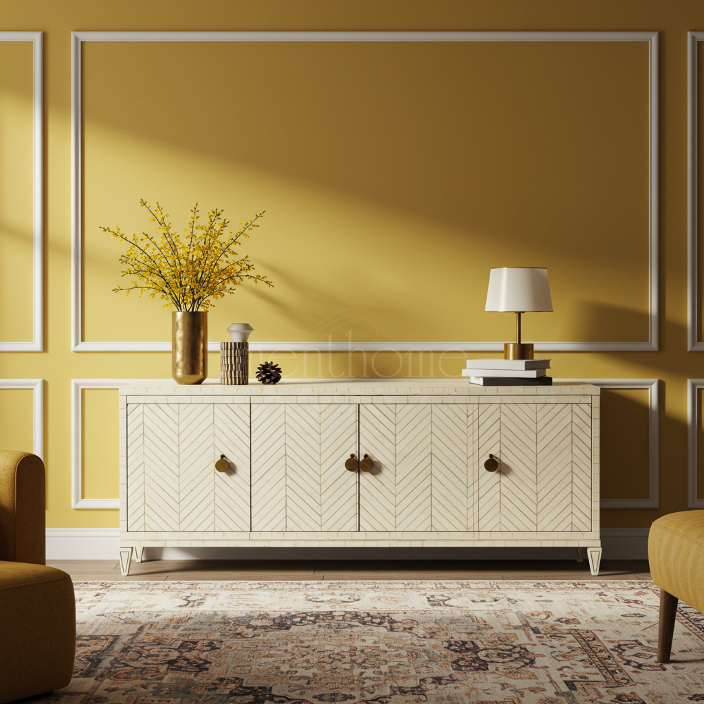Luxury Inlay TV Cabinet with Chevron Pattern | Luxury Handmade TV Cabinet