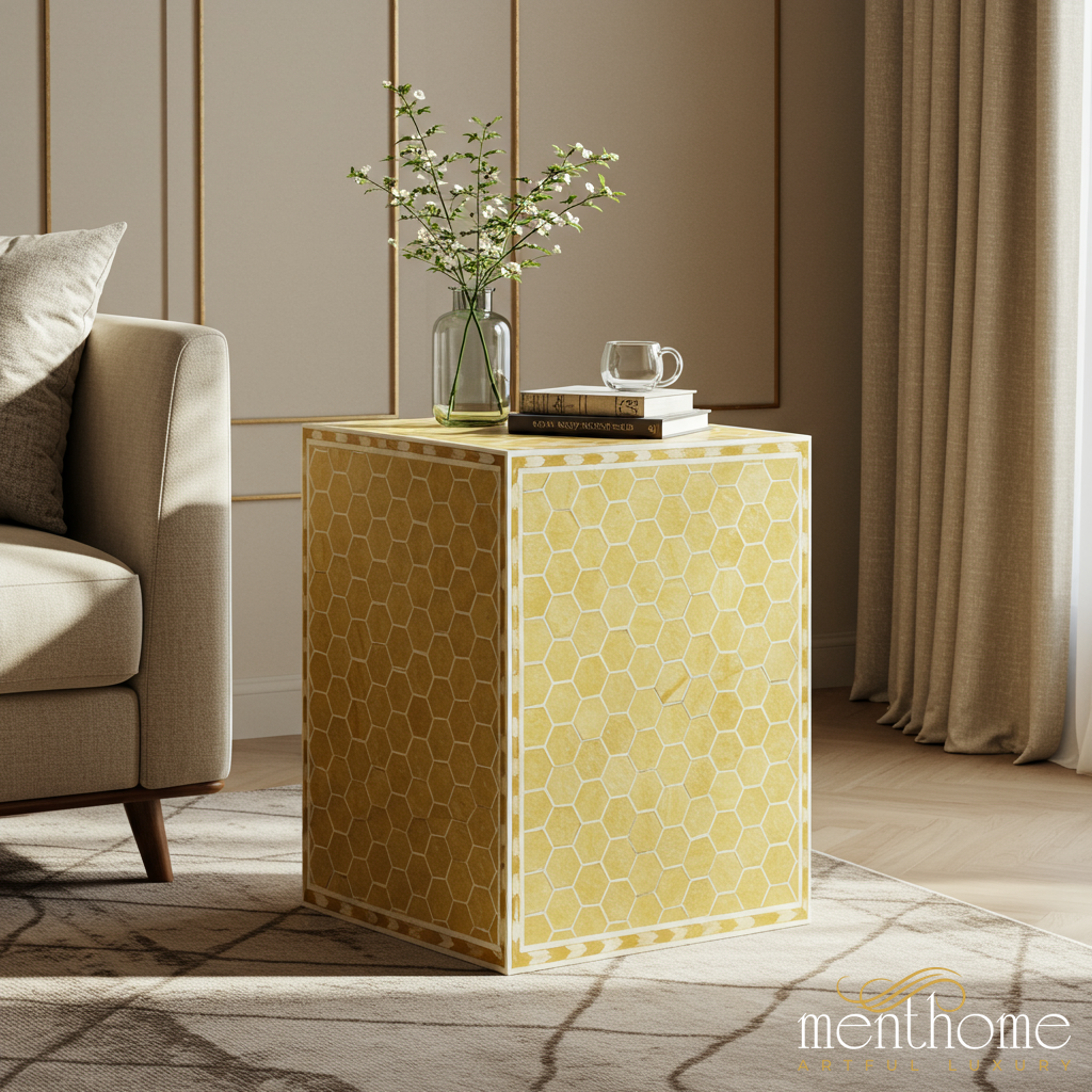 Modern Yellow Honeycomb Pattern Side Table | Luxury Handmade Side Table