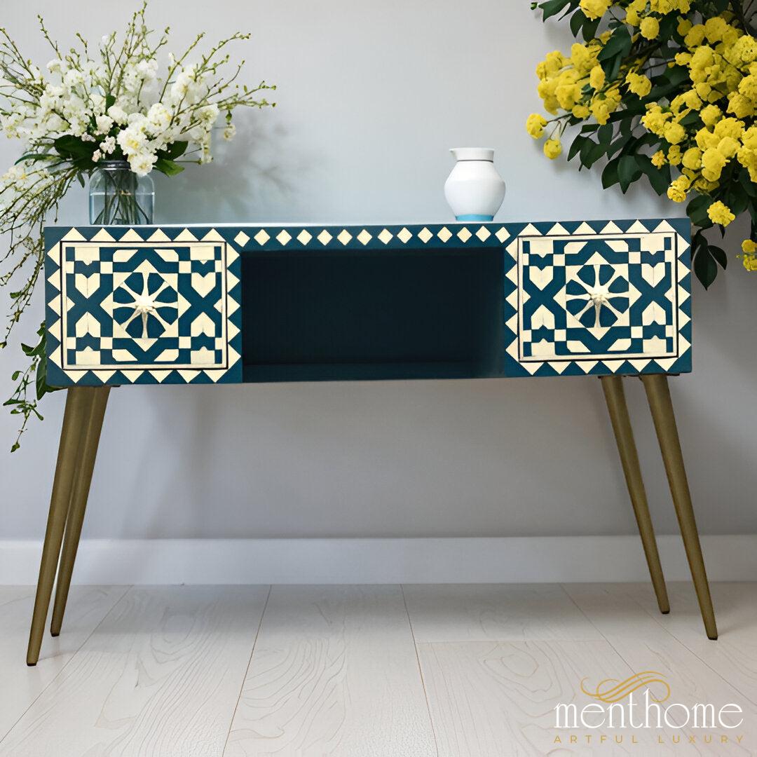 Moroccan Pattern 2-drawer Turquoise Resin Desk | Luxury Handmade Desk