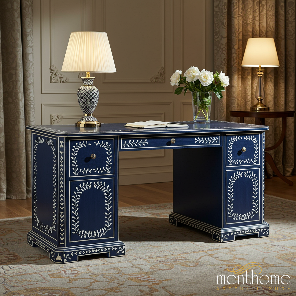 Navy Blue Hand-Painted Wooden Writing Desk | Luxury Handmade Desk