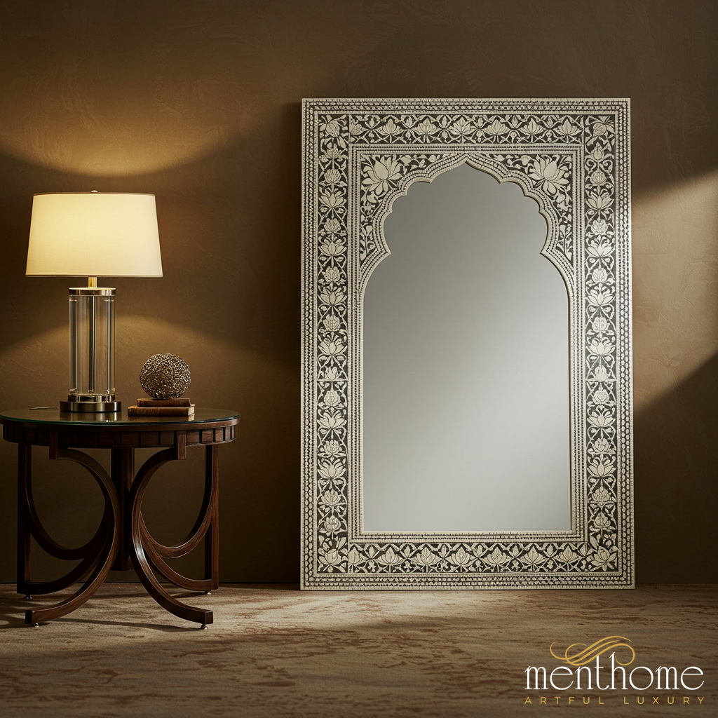 Ornate Arch-Shaped Wall Mirror with Floral Inlay Design | Luxury Handmade Mirror
