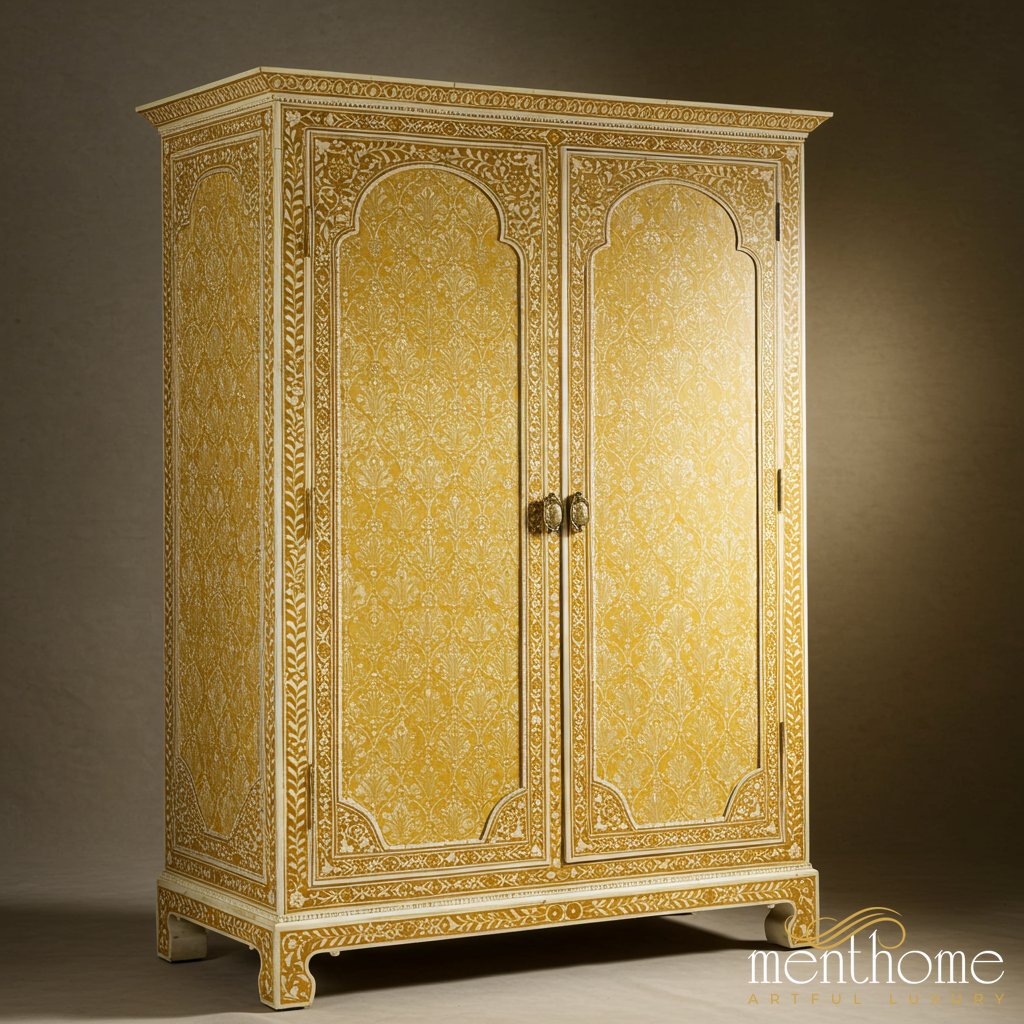 Ornate Golden Inlaid Two-Door Cabinet | Luxury Handmade Wardrobe