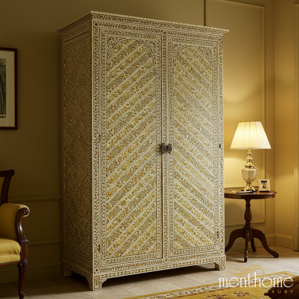 Ornate Handcrafted Two-Door Wooden Wardrobe | Luxury Handmade Wardrobe
