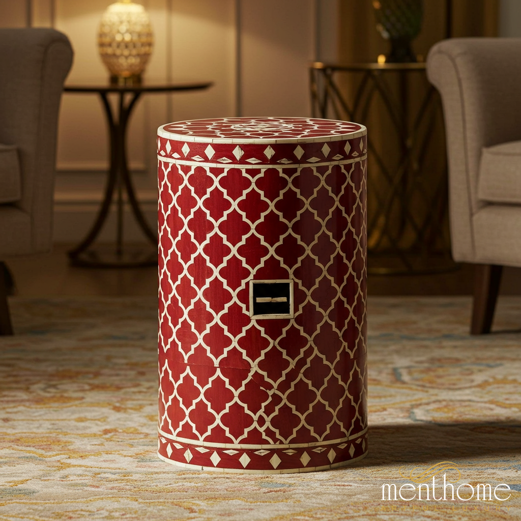 Red and White Decorative Drum Stool | Luxury Handmade Stool