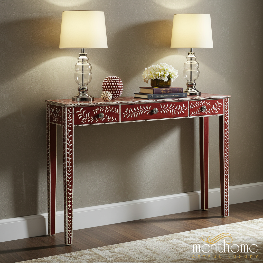 Red and White Hand-Painted Console Table with Drawers | Luxury Handmade Console