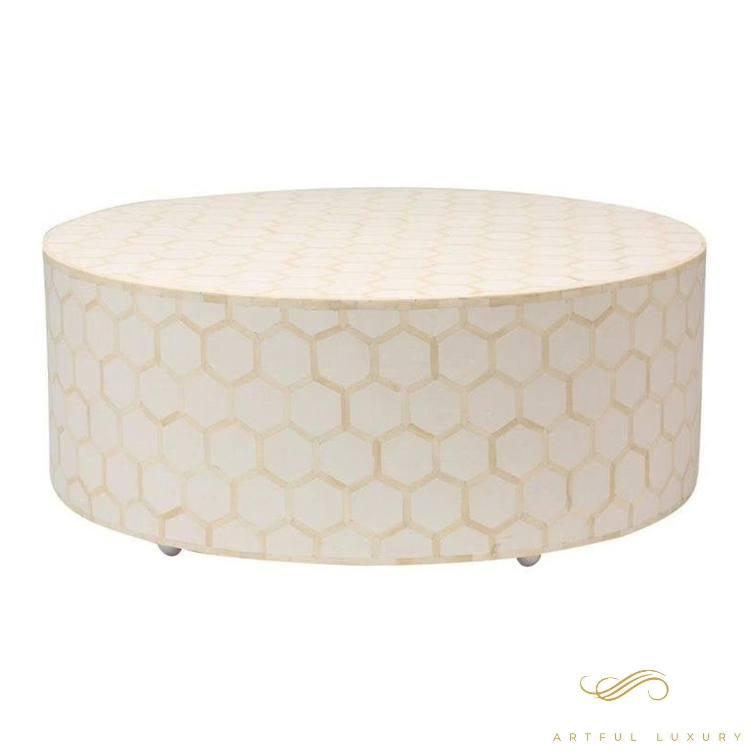 Round Honey Comb Coffee Table Bone Inlay | Luxury Handmade Coffee Table