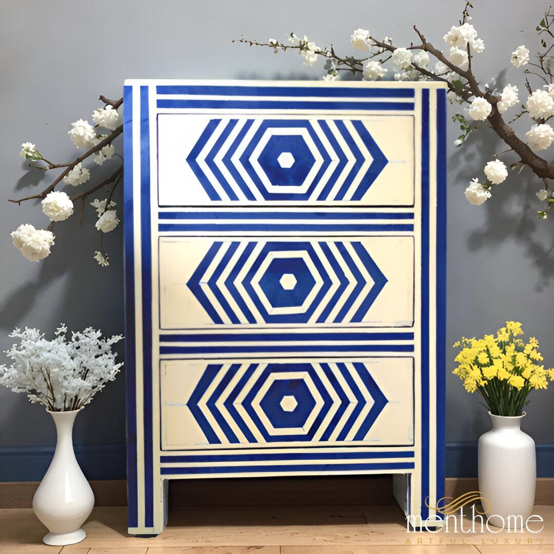 Star Design Blue and White 3 Drawer Resin Bedside Table | Luxury Handmade Bedside Table