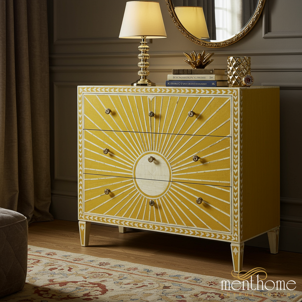 Sunburst Yellow Three-Drawer Chest | Luxury Handmade Dresser