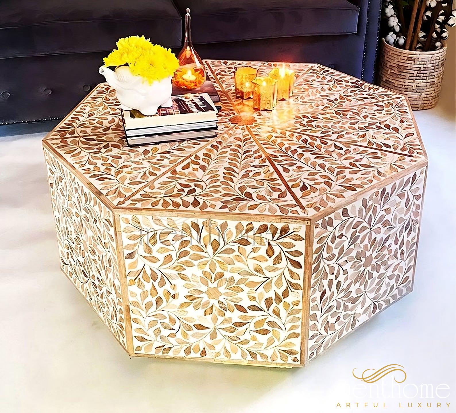 Teak Coffee Table wooden Floral Design | Luxury Handmade Coffee Table