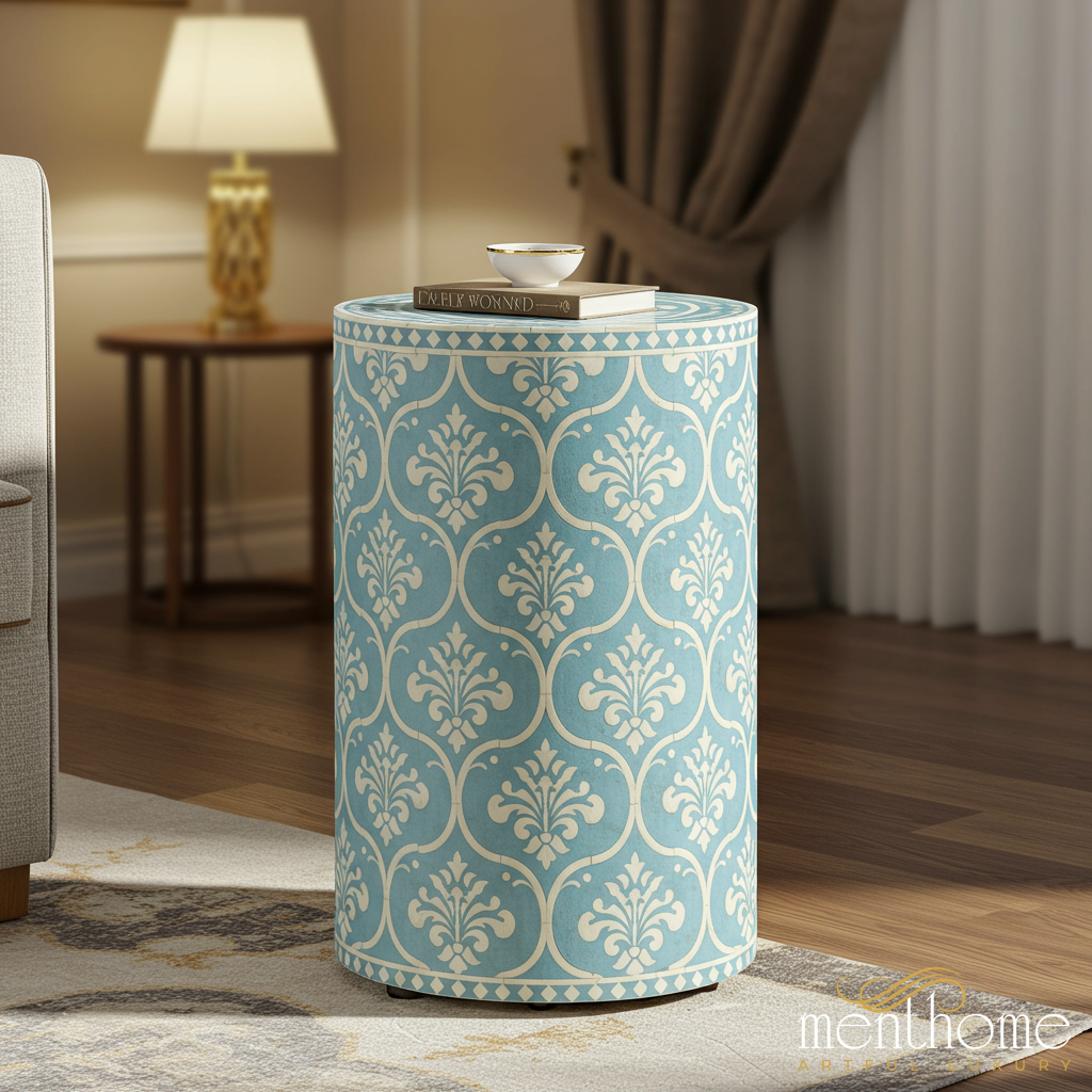 Vintage Blue Drum Side Table | Luxury Handmade Side Table