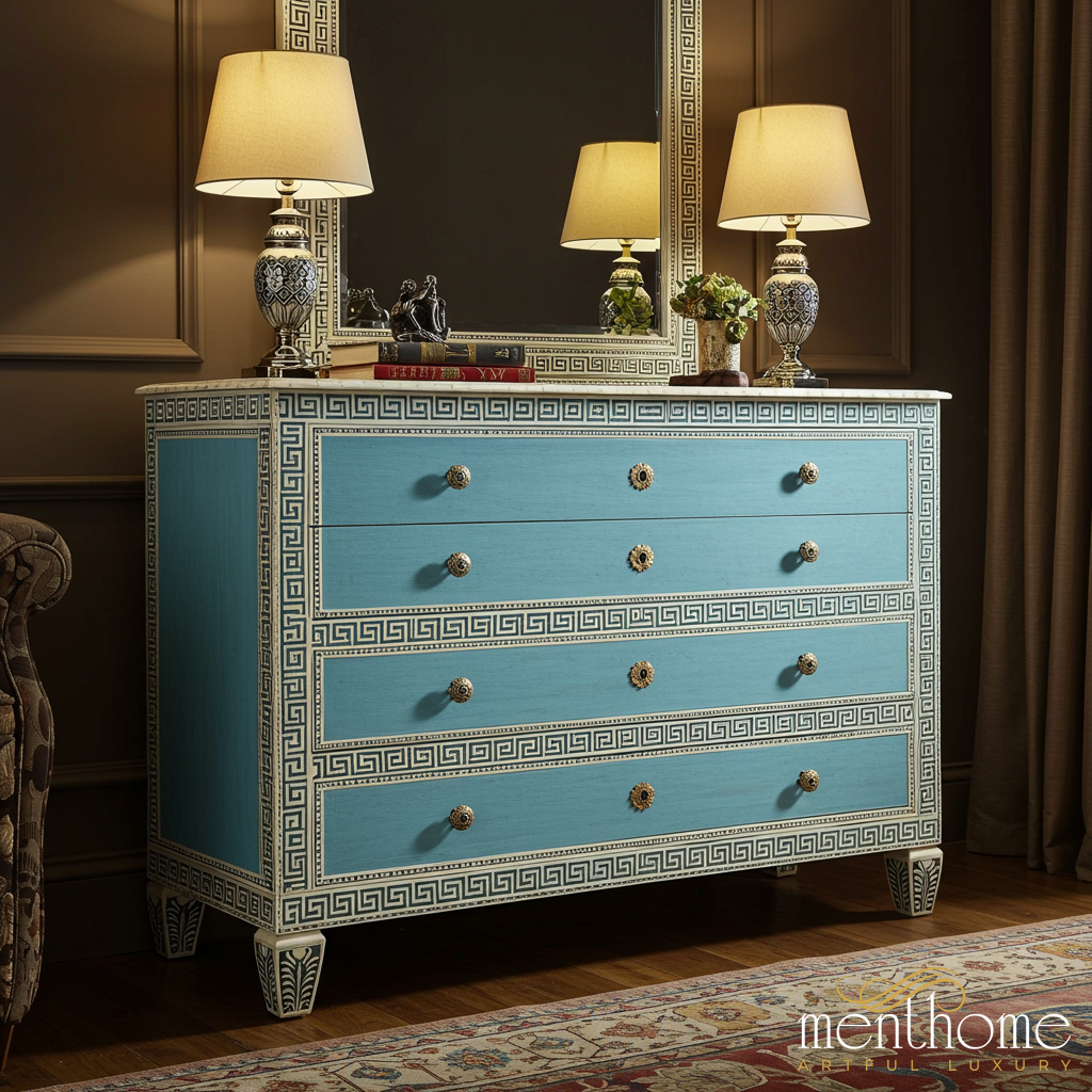 Vintage Blue Greek Key Dresser | Luxury Handmade Dresser
