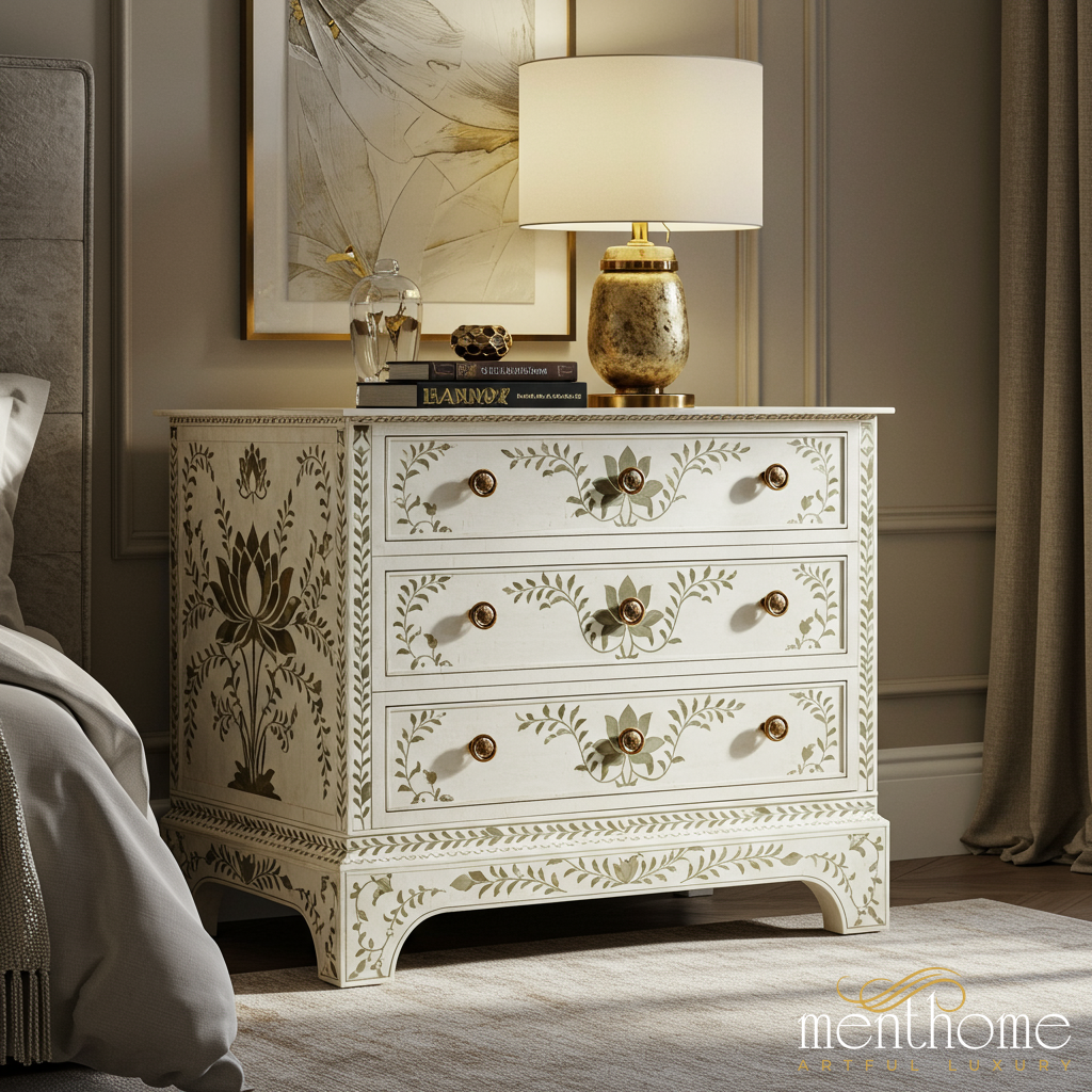 Vintage Floral Hand-Painted Three-Drawer Chest | Luxury Handmade Chest of Drawer
